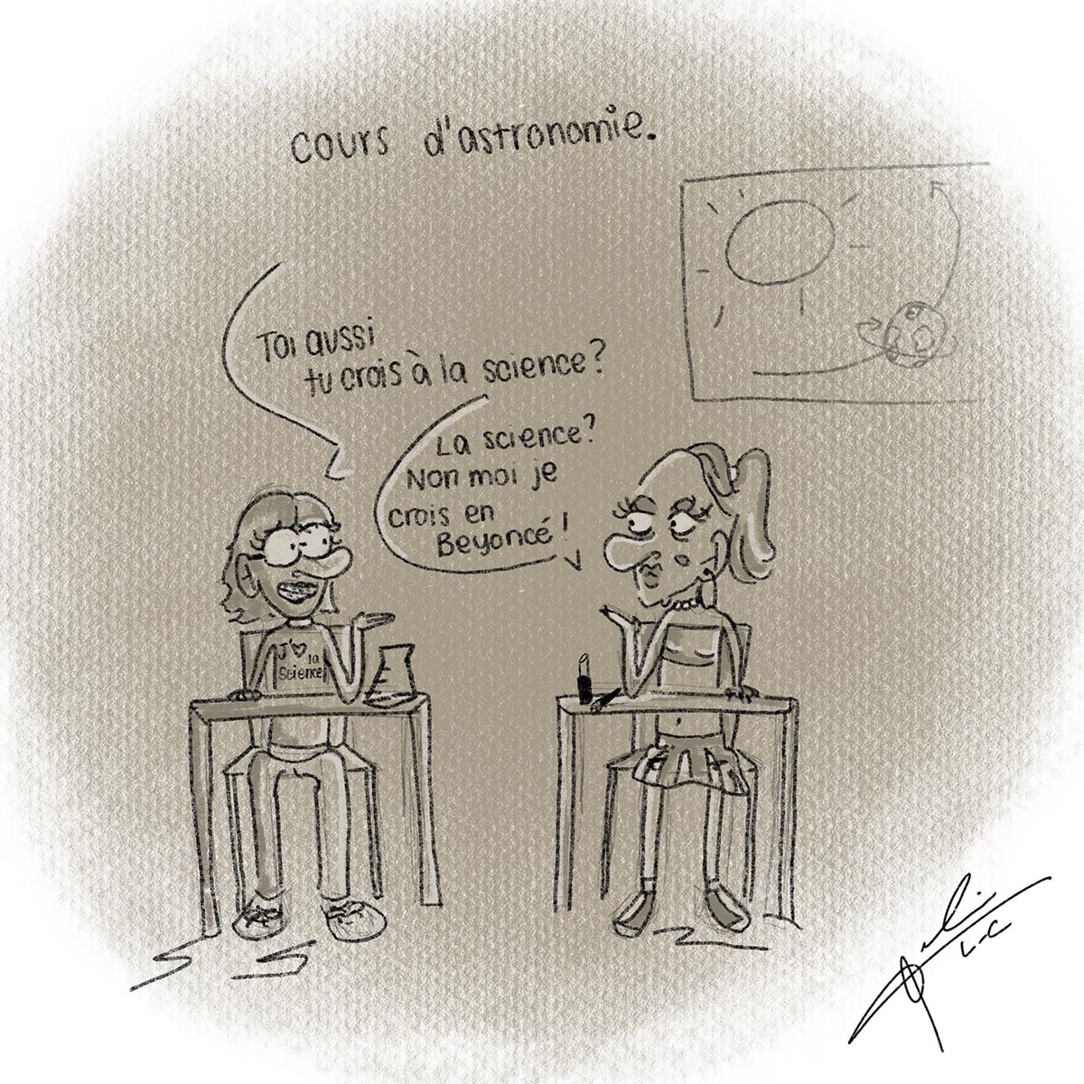 Caricature : Cours d'astronomie